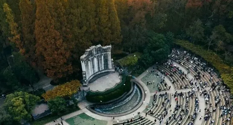 去完中山陵,我会建议她去旁边那座音乐台。1932年建成,中式古典格调,半圆形的观众席嵌进山坡,台前是一汪月牙形的水池,池边种着松柏,常年有一种说不出来的静气。