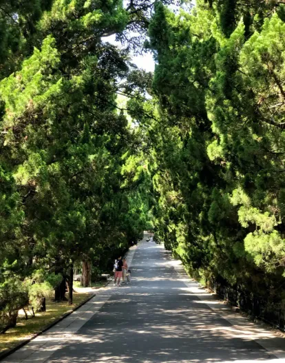 道路两旁龙柏长势茂密,形成的林荫走廊极具延伸感,拍照出片效果极佳,是拍摄婚纱照的热门地点。