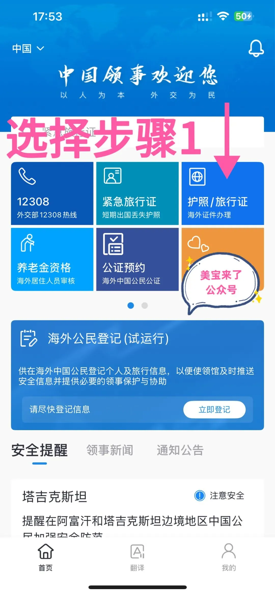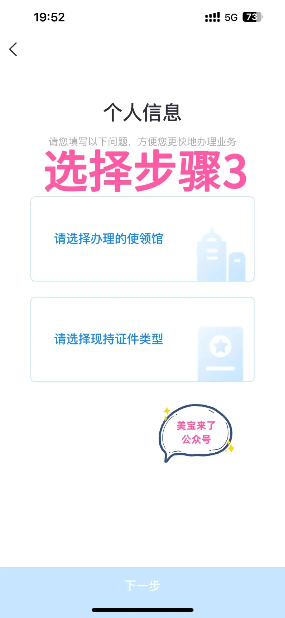 打开“中国领事App”之后,第一个环节就是“信息选择环节”。在此处,千万不要选错了~否则后面的所有操作都是在浪费时间。
