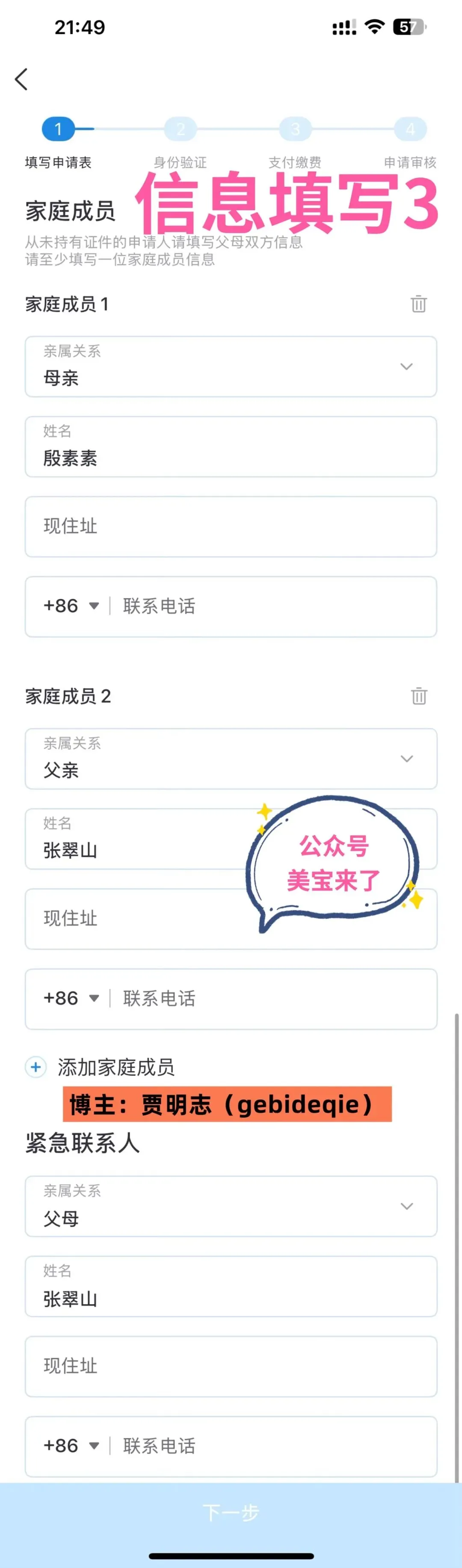 特别是申请人(孩子)的【外文姓+外文名】千万不要写错了。