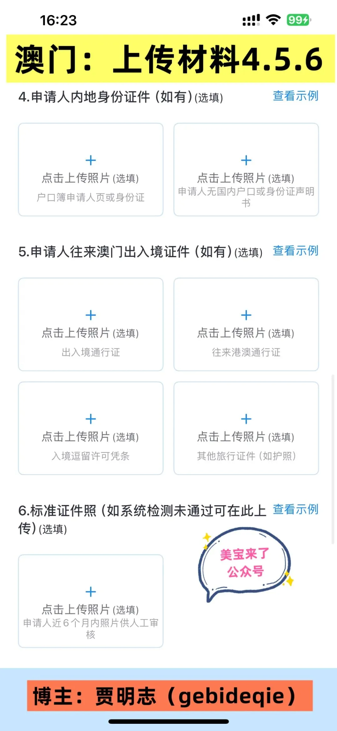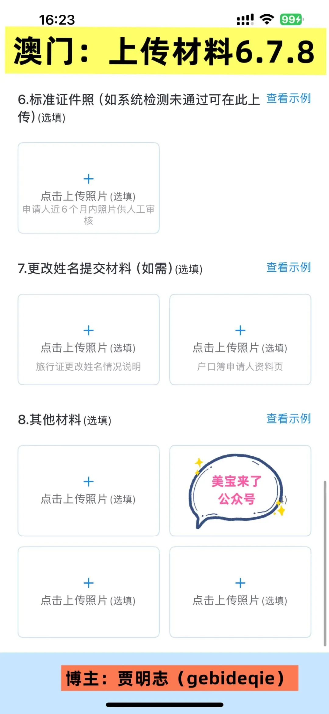 一共有8个区域,按提示文案,上传对应的材料即可。如果有不明白的地方,点击查看对应的【查看示例】,里面有非常具体的举例说明。