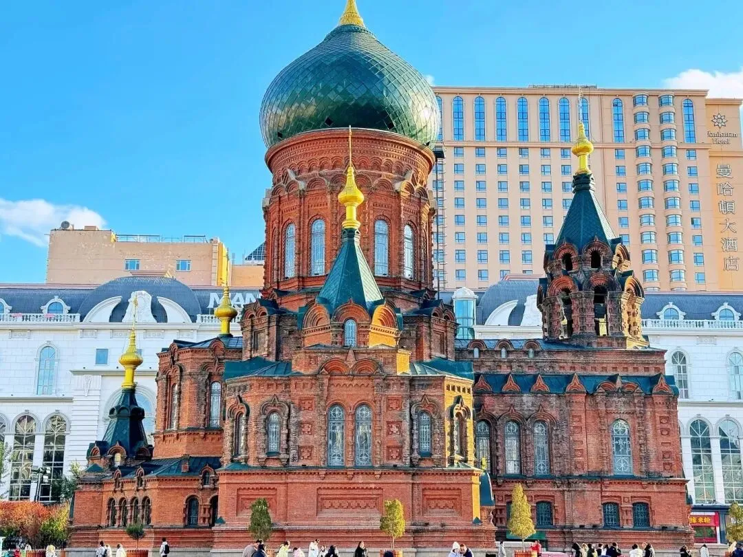 绿色洋葱头穹顶,哈尔滨最上镜地标。📷广场免费拍全景,傍晚亮灯后氛围拉满🎫内部参观约20元