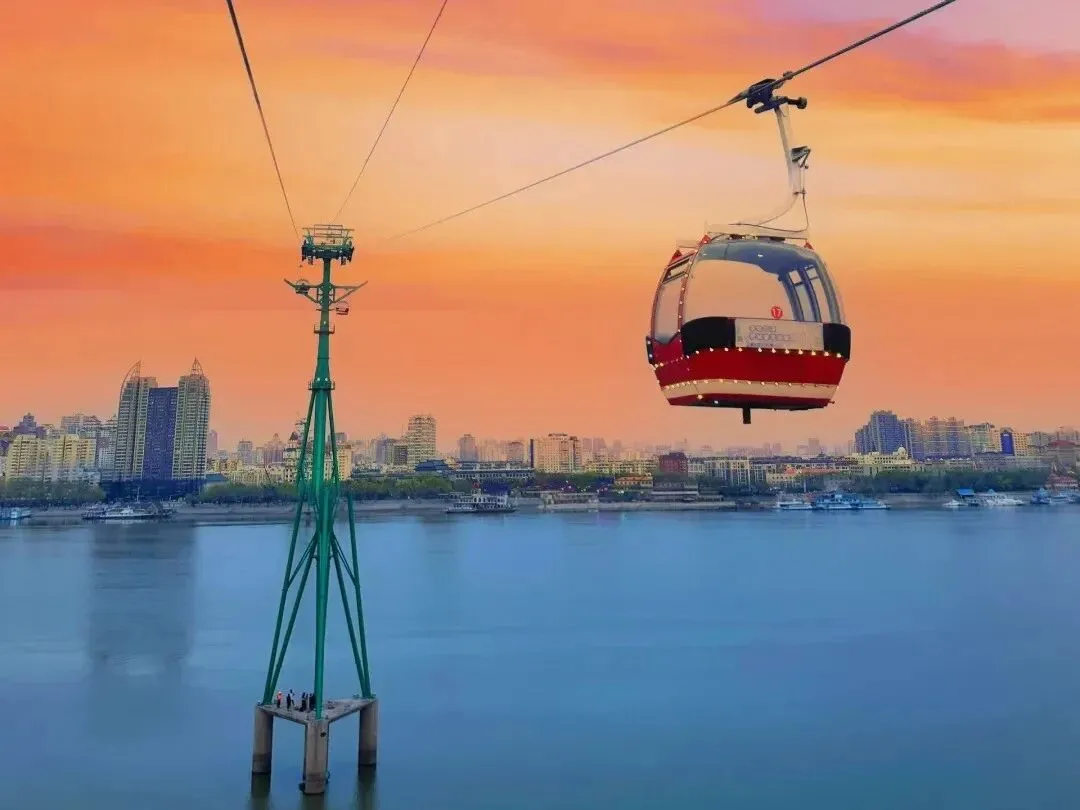 缆车飞跃江面,白天看春江,傍晚追日落⌚️9:00–20:00📍江南乘船点:道里区通江街218号