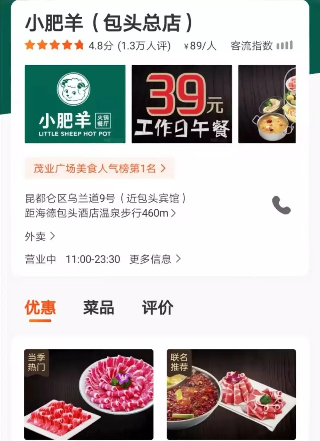 小肥羊是全国连锁, 不过包头的总店还是值得试试的, 毕竟羊肉品质会更好一些,味道不亚于海底捞。