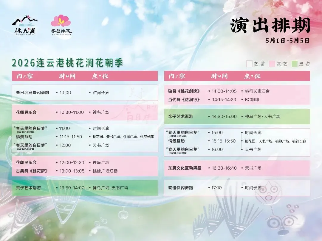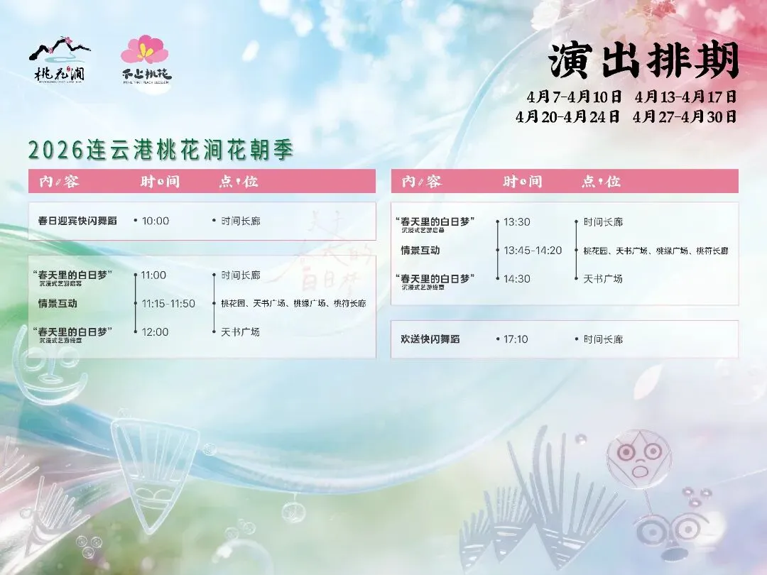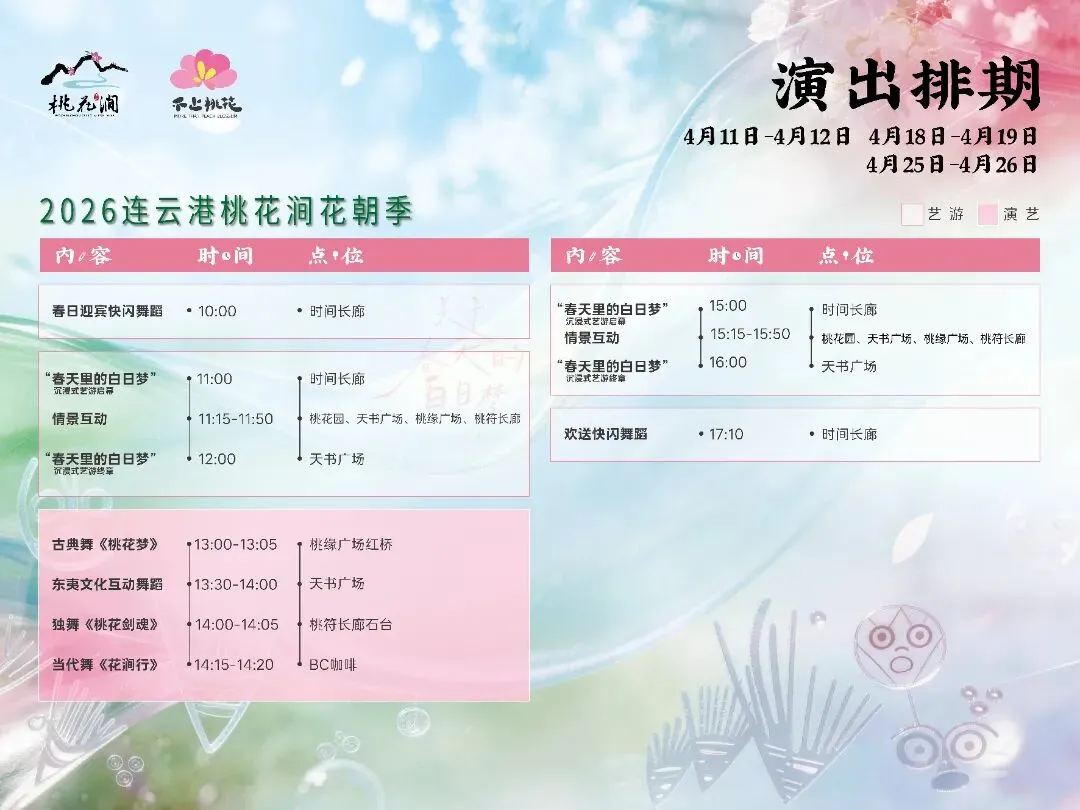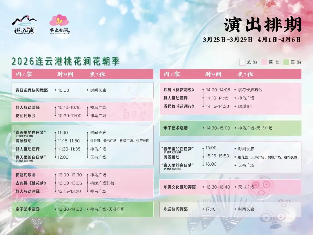 春风送暖,桃花盛开,连云港桃花涧2026花朝季已浪漫启幕!以“关于春天的白日梦”为主题,沉浸式艺游、花涧市集等核心板块齐上线,超多演艺、趣味互动、特色小吃轮番登场,3月28日-5月5日,这份保姆级游玩攻略快收好,解锁春日游园新体验~