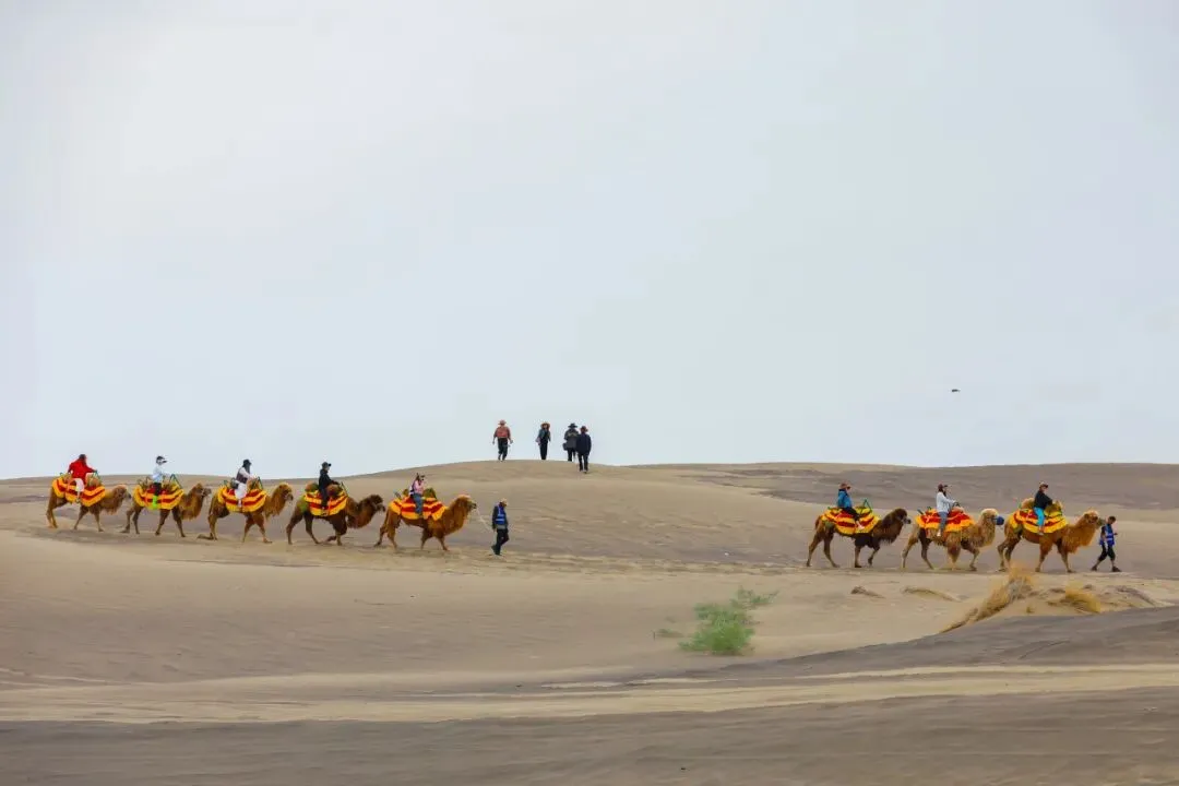 骆驼骑游:驼铃悠悠,漫步金色沙丘,打卡丝路同款意境,夕阳下拍照超出片。