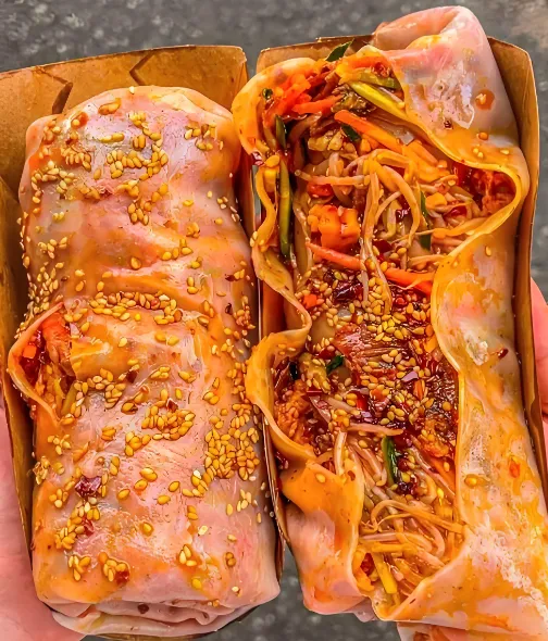 第二美食:裹凉皮濮阳人的“夏日情书”!凉皮不是拌着吃,而是卷着吃!透亮的凉皮裹上黄瓜丝、面筋、花生碎,淋上芝麻酱辣椒油,卷成圆筒一口咬下——爽滑、香脆、酸辣三重暴击!推荐店:吴大姐凉皮(中原路一机厂家属院)、吴林霞壹加壹凉皮。每份7-10元,一定要加醋多放辣!