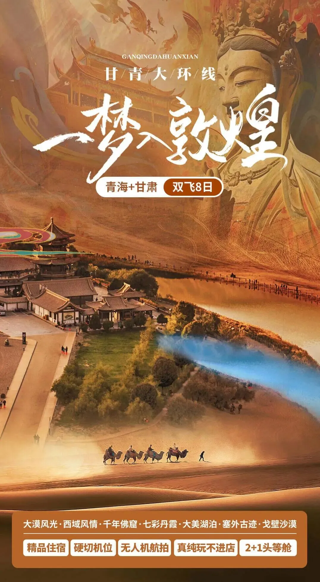 【甘青8日大环线旅游攻略】双飞纯玩,畅游丹霞/盐湖/莫高窟/青海湖,住舒适酒店,含特色餐,0强制购物