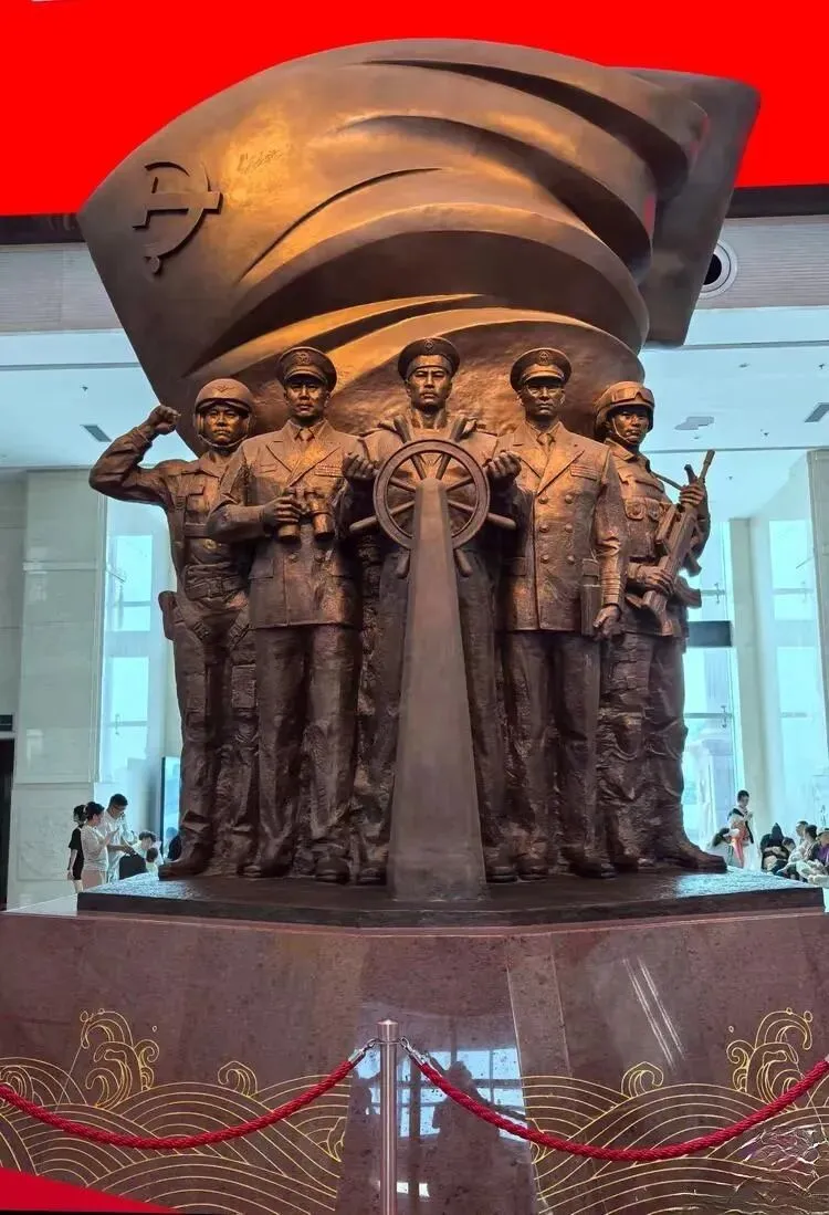 标志性主展馆建筑+海军英雄雕塑群,蓝天映衬下超出片,是必拍的入园封面照。 广场平坦开阔,适合拍亲子大合影,给娃热身、整理装备都方便。 从这里沿主展厅路线参观,全程平缓无台阶,新手/亲子友好。