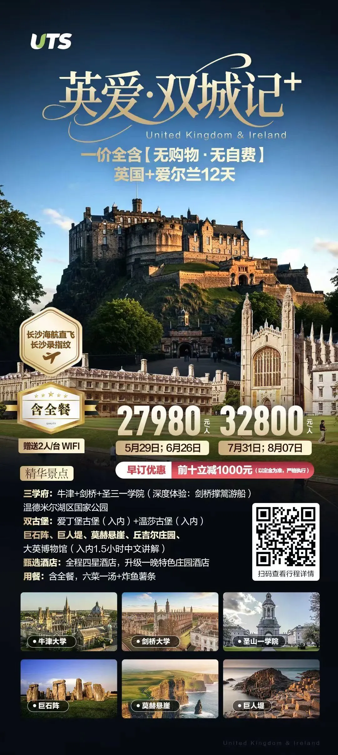 英国旅行计划《英国爱尔兰》爱丁堡-伦敦-温德米尔湖、大英博物馆牛津剑桥+莎士比亚小镇+英格兰苏格兰/爱尔兰及北爱尔兰/威尔士等旅游计划