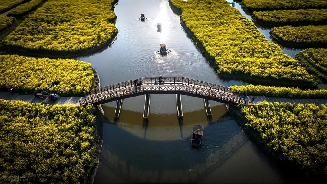 4月的兴化,油菜花田漂浮在水面上,形成独特的“千垛”景观。