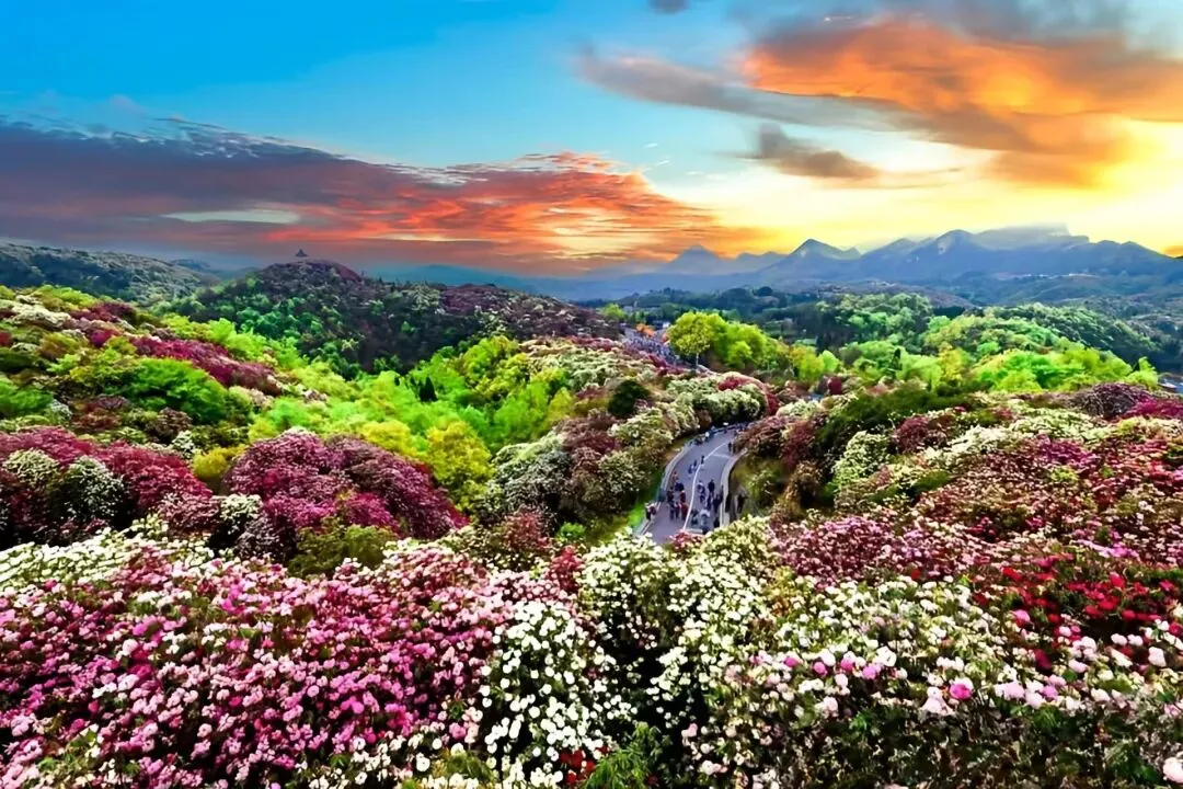 漫山遍野的杜鹃花海,仿佛大自然打翻了调色盘。