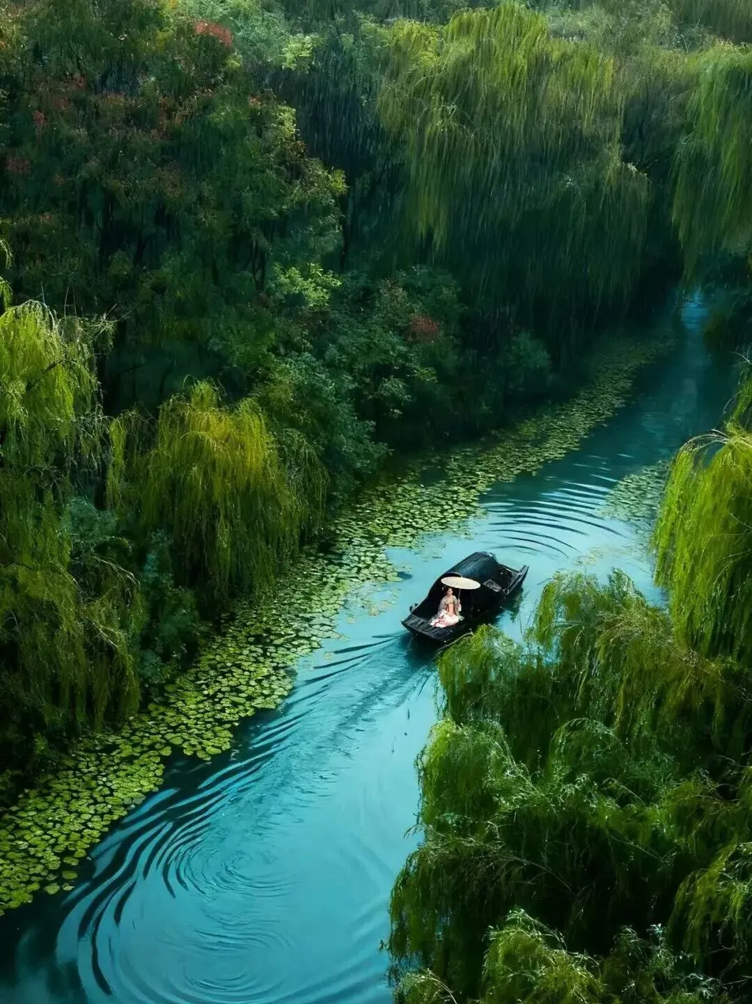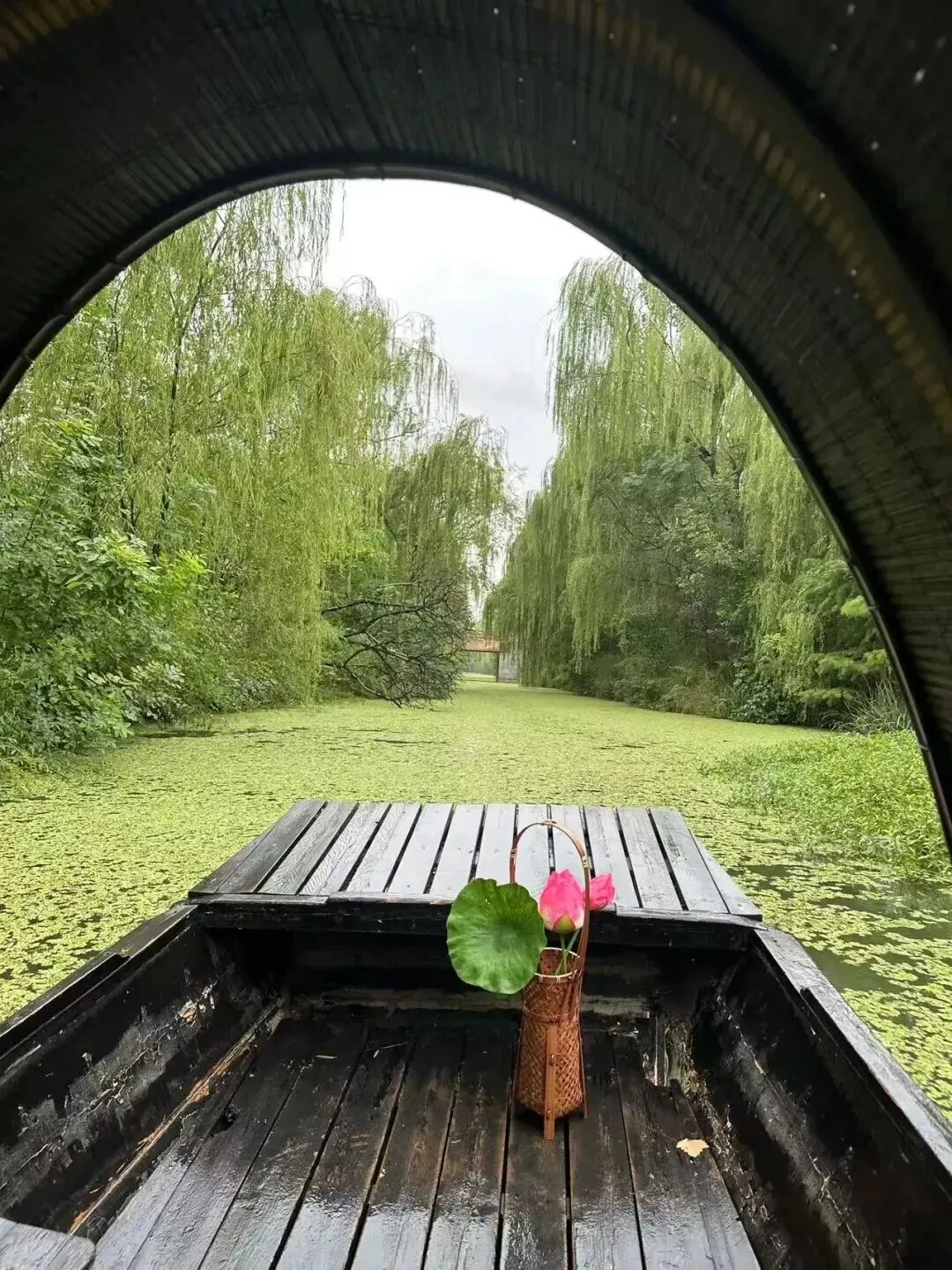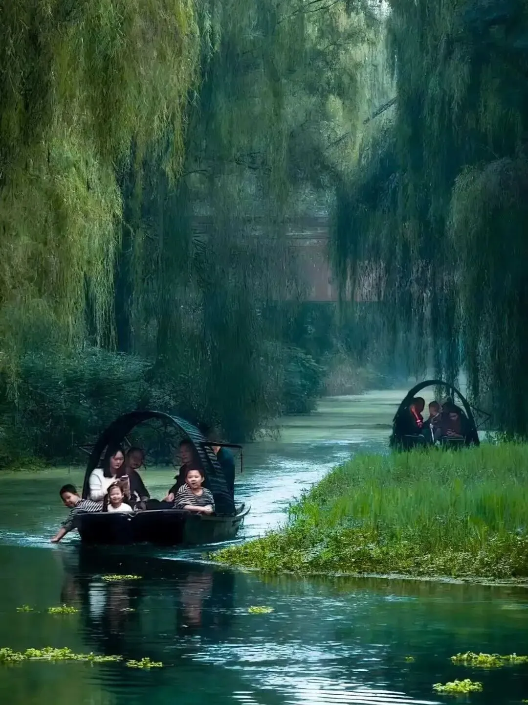 此外,作为春日里的别样体验,乘坐乌篷船游园同样引人。