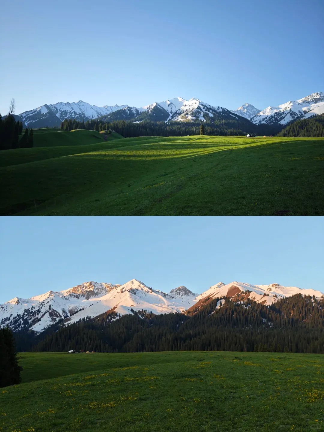 第五天 从那拉提出发 穿越天山的雪山路段 晚上住在吐鲁番 路上大概六个小时一路上能看到连绵的雪山和成片的云杉树林 景色十分好看出行小提醒 可以提前准备一些零食 沿途吃饭的地方比较少