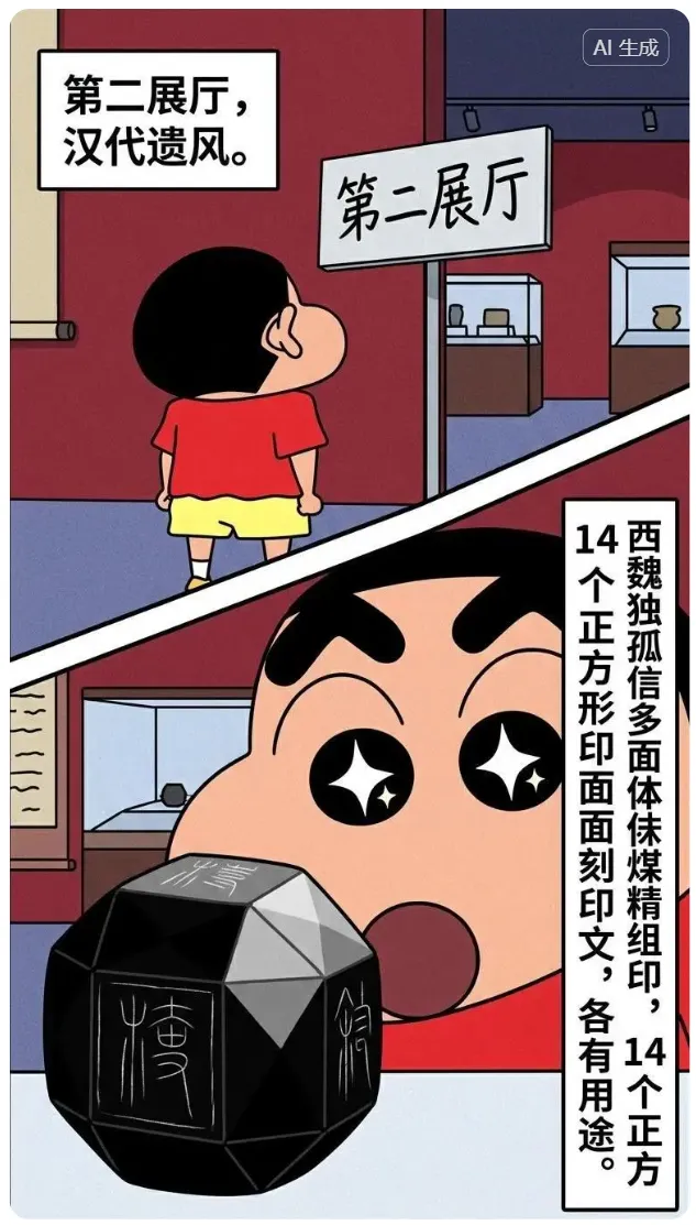 印章呈球体8棱26面,14个正方形印面刻印文。主人是西魏独孤信,14面印文内容不同,各有用途。可分为公文、上书、书简三大类印文内容。