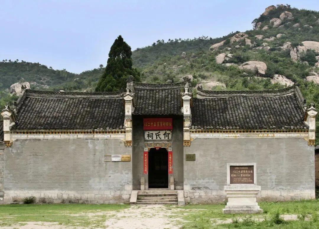 何氏祠系明末清初建筑,原为何氏宗族祠堂,现为红二十五军长征出发地纪念馆。1934 年11月13日,红二十五军从光山县花山寨转移到何家冲休整时,何家冲的老百姓把祠堂让了出来,作为红二十五军的军部机关,何氏祠占地400平方米,共有房屋 16间,分一进屋二进屋和东西厢房,为青砖布瓦房,风格清雅古朴。现在纪念馆内通过历史图片、实物陈列、文字解说以及声光电场景造型,为我们真实的再现了红25军的建立、成长、壮大的历史过程。