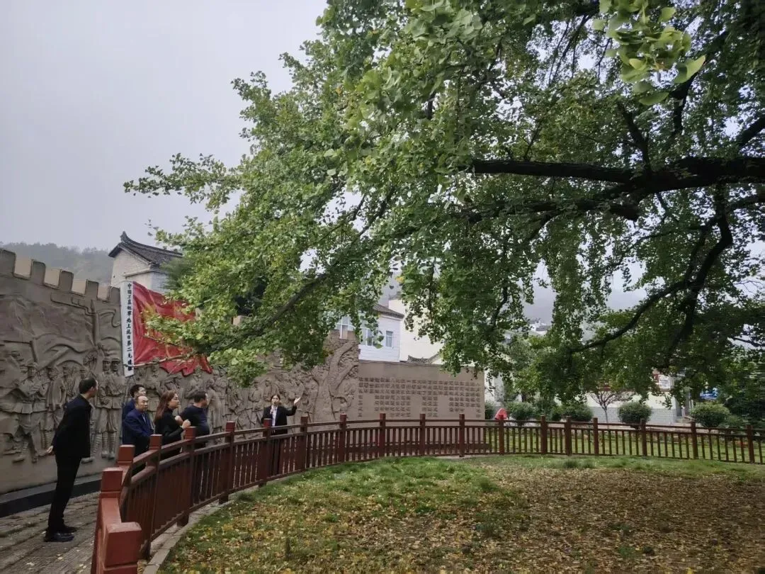 银杏树直径为1.5米,高约为30米,据林业部门鉴定距今已经有800多年的历史。1934年11月16日晚,在这棵银杏树下,军政委吴焕先宣读了《长征出发宣言》,红二十五军由此开始长征。1996年,银杏树被国务院批准为全国重点文物保护单位,它也是全国目前为数不多的一个以树命名的“国宝”,被誉为“中原大地上的绿色纪念塔”。