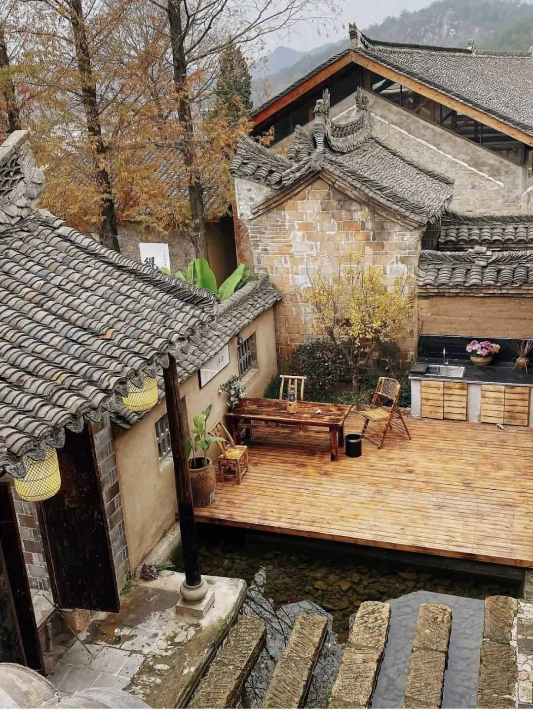 大别山区的山地地势构成了山水相依的自然风光,让这片人文气息浓厚的小村落也不乏山光水色的装点。