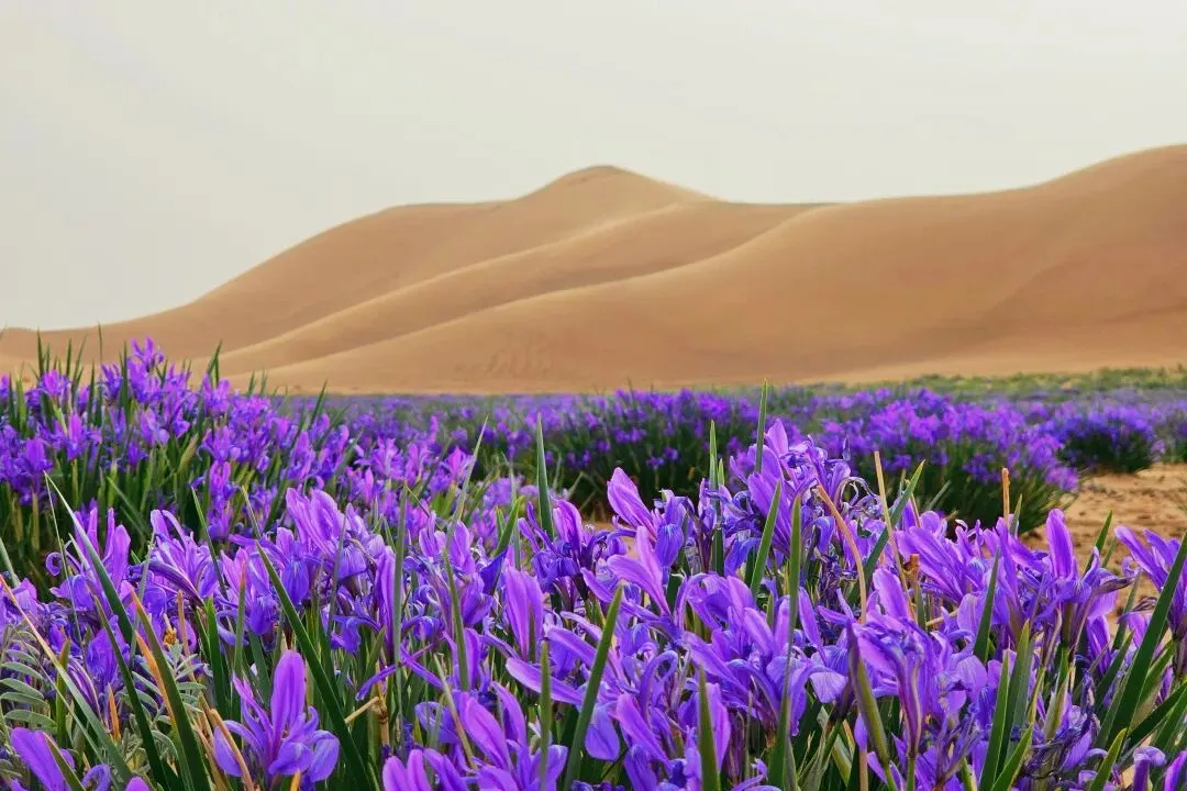 沙丘、戈壁环绕拥抱中的马兰花滩
