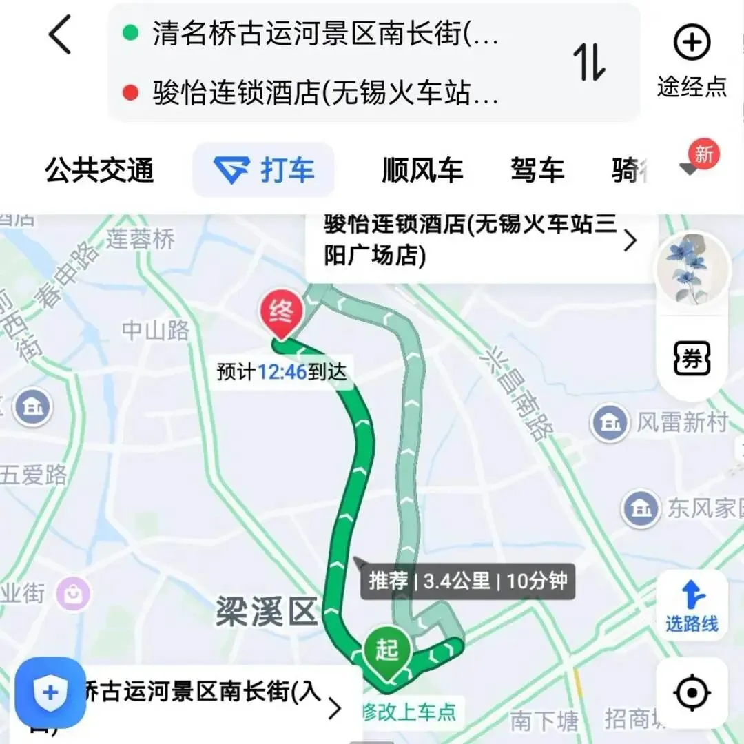 路程:酒店→惠山古镇(大约14min到达)