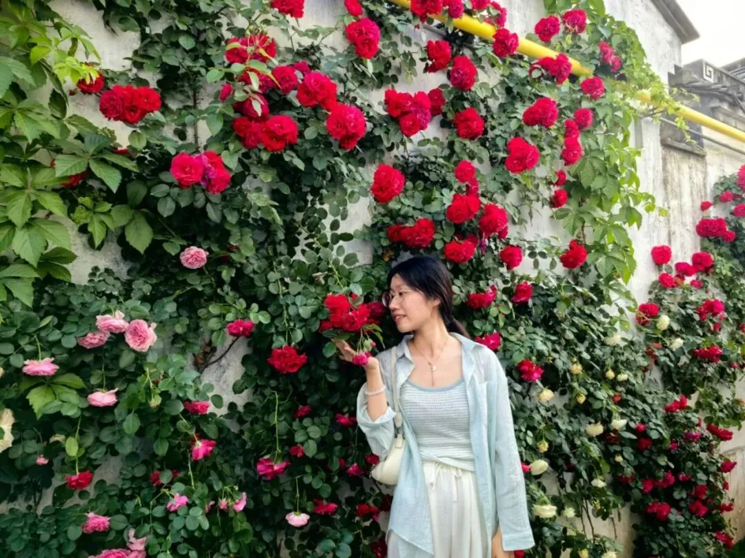 3)上厕所时,意外发现厕所对面有一片玫瑰花墙,可以驻足拍照。