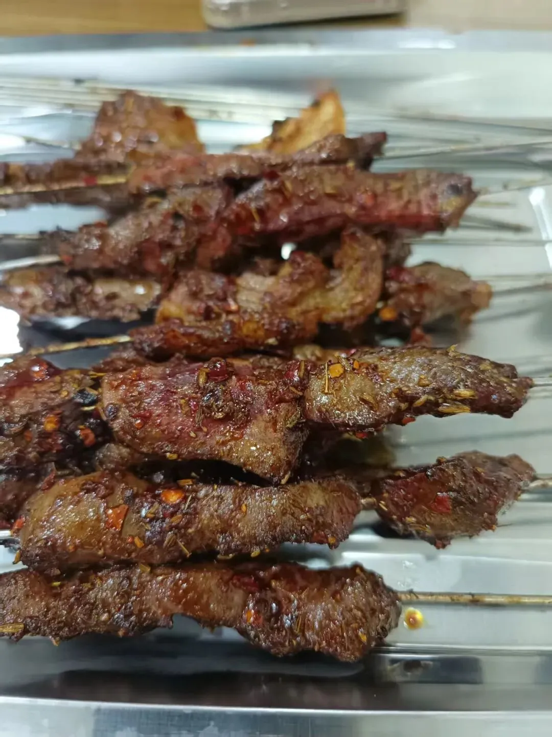 3.西安烧烤和湖南烧烤完全不一样,没什么素菜基本全是肉,而且都是1块、1块2一串,又便宜又好吃,来西安五天几乎每天夜宵都要来一顿。之前吃不来生蒜,来西安简直打开了新世界的大门,怎么会有烧烤配蒜这么好吃的东西!还有烤油馕也是绝世美味,巨香!
