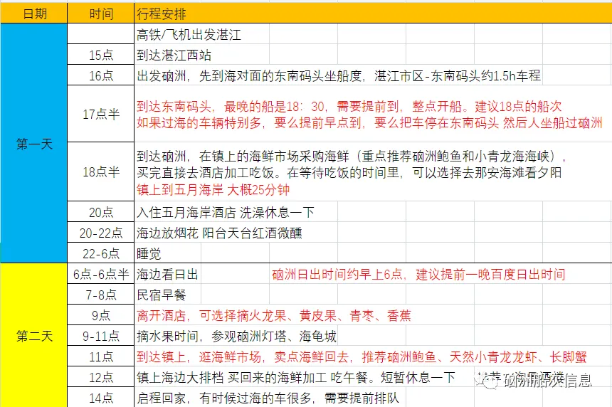 因硇洲岛地处相对偏远,交通不便,推荐两日游行程。