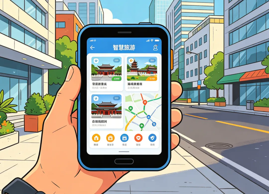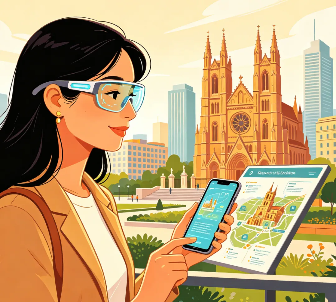 游客通过手机摄像头识别景点,AI叠加历史信息、3D复原模型、故事动画。