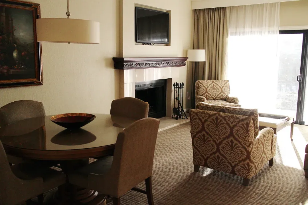 如果全家人一起拜访纳帕,推荐可以挑选Silverado Resort的小木屋区,从酒店主栋Mansion开过来大概五分钟左右,在高尔夫球场的另外一头。房型除了基本的酒店房型,还有一房、两房与三房的房型,适合全家或是三五好友一起入住。有火炉的客厅区以及厨房,一起在房间内烹煮料理也是很棒的选择。