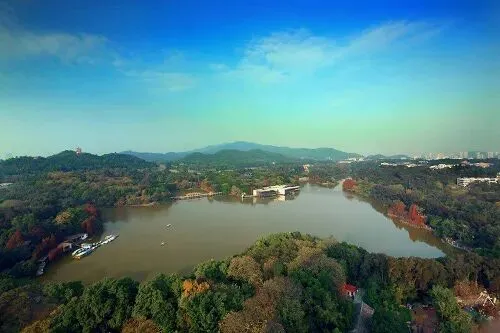 一个以湖光山色著称的城市大型山水园林。“一山环秀水,半岭隐涛声”正是公园的生动写照,园内林木苍翠,鸟语花香,亭榭桥廊点缀其中,是一片城市中的绿洲。园内的景点有聚芳园、儿童乐园、星海园、白云仙馆,饮食休闲娱乐的地方有鹿鸣酒家、畔山明珠、烧烤场、游艇部等,还有一个18洞国际标准的高尔夫球场。