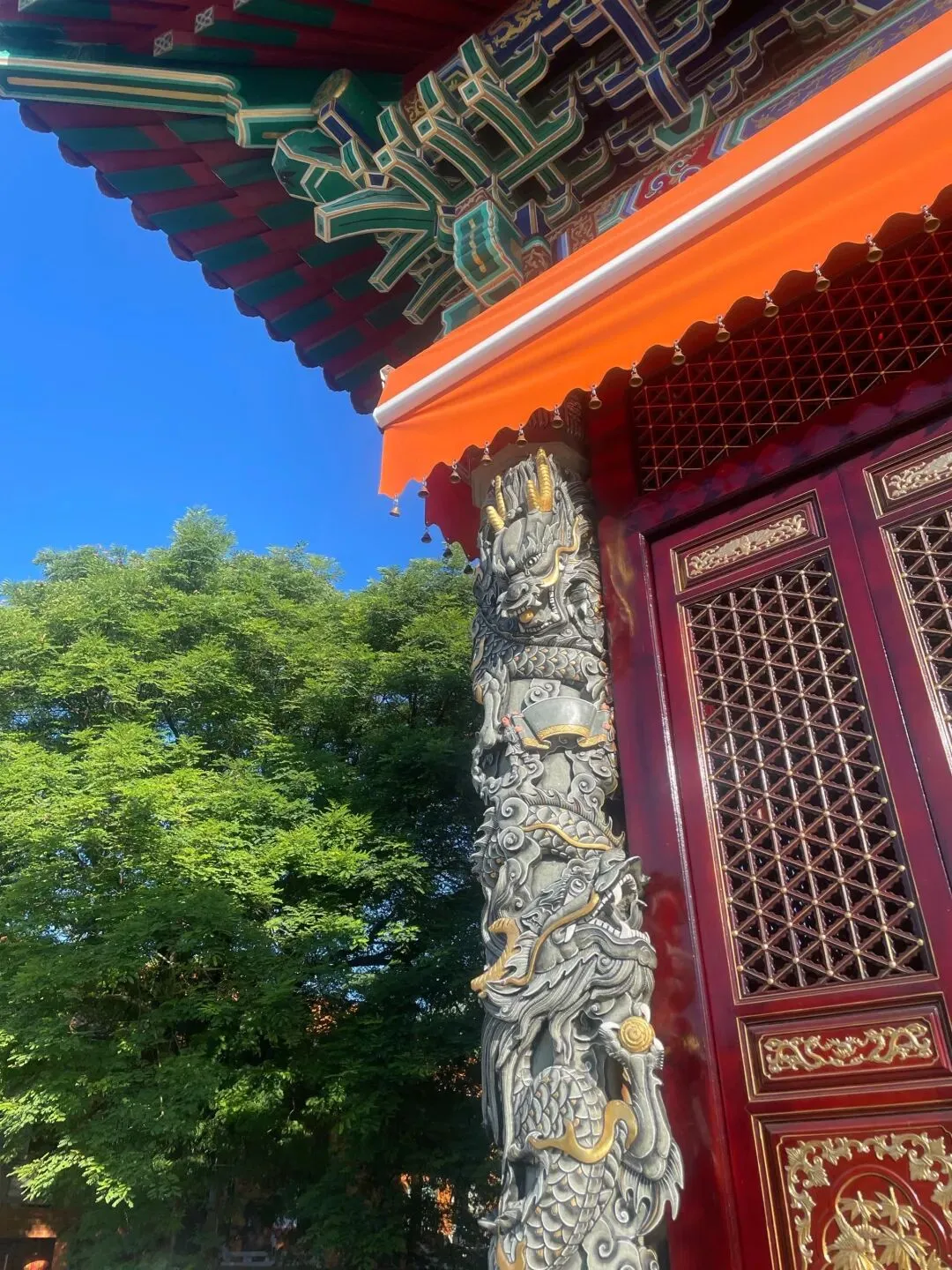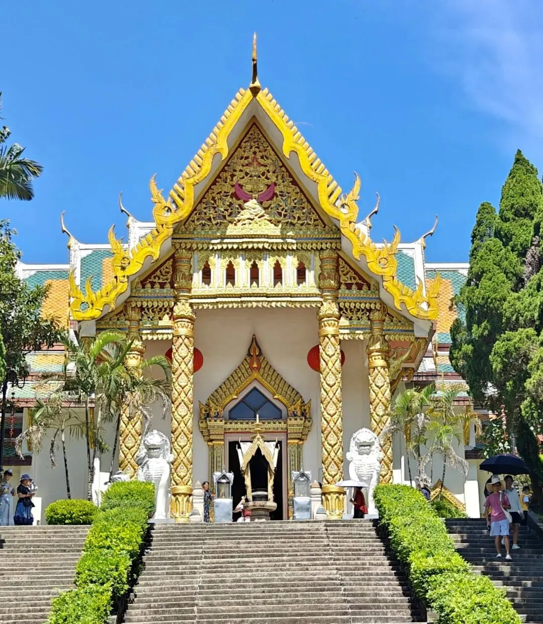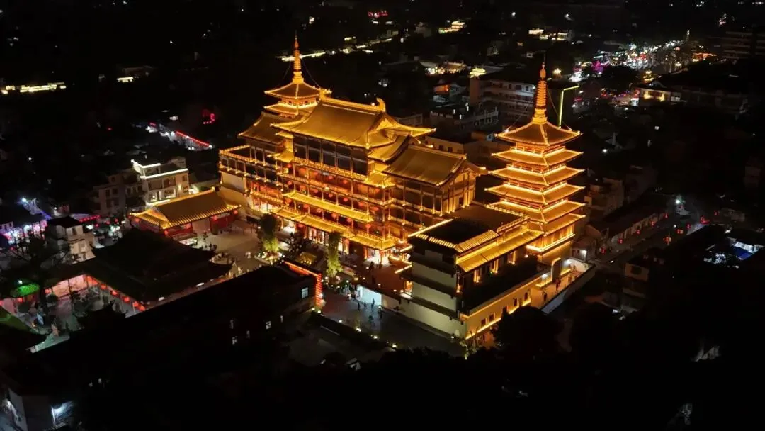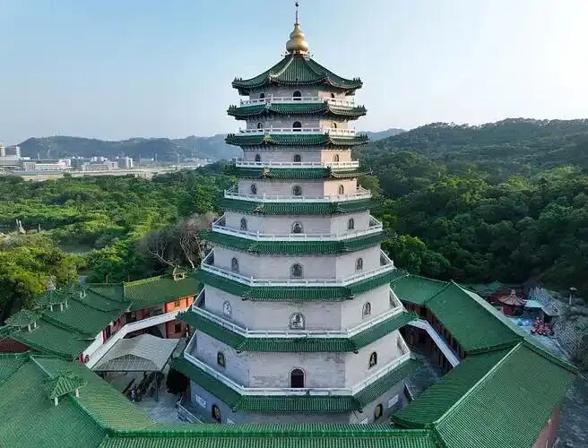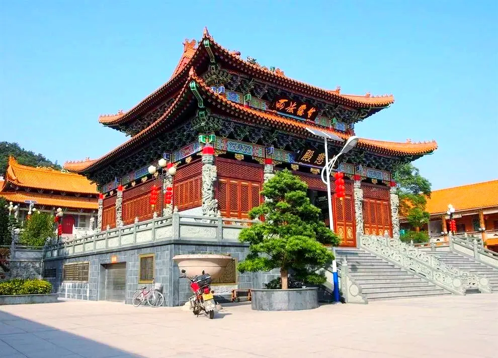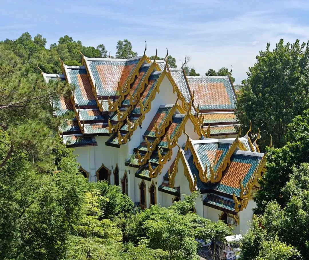 泰佛殿:中国大陆首座规模宏大的泰式佛教建筑,由泰国华侨捐资修建,仿照泰国云石寺(越孟乍玛匹寺)建造,采用重檐多面式屋顶、鱼鳞瓦、金色封檐板,色彩鲜艳,极具异域风情。