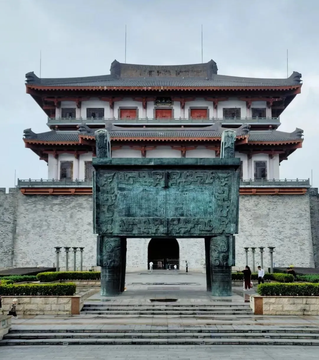 青铜宝鼎:楼前广场上矗立着高9.99米、重达58吨的青铜宝鼎,号称世界最大最重的青铜方鼎。它寓意着揭阳的繁荣昌盛和历史的悠久。
