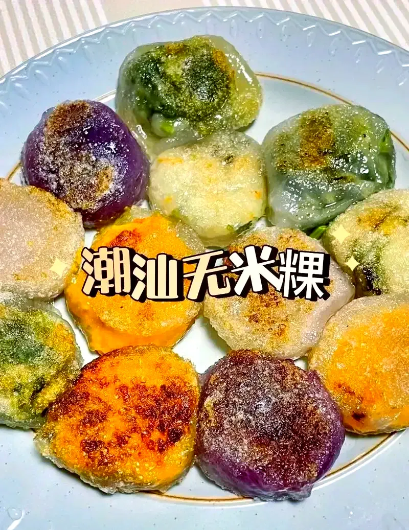3、无米粿:薯粉皮包裹韭菜或土豆馅,煎至金黄,皮脆馅香。