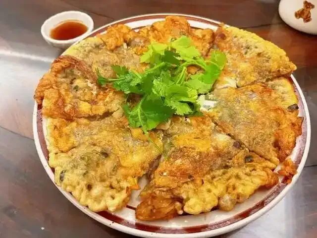 5、蚝烙:小蚝仔裹地瓜粉煎至金黄,配鱼露食用,鲜香酥脆,是潮汕人喜爱的传统小吃。