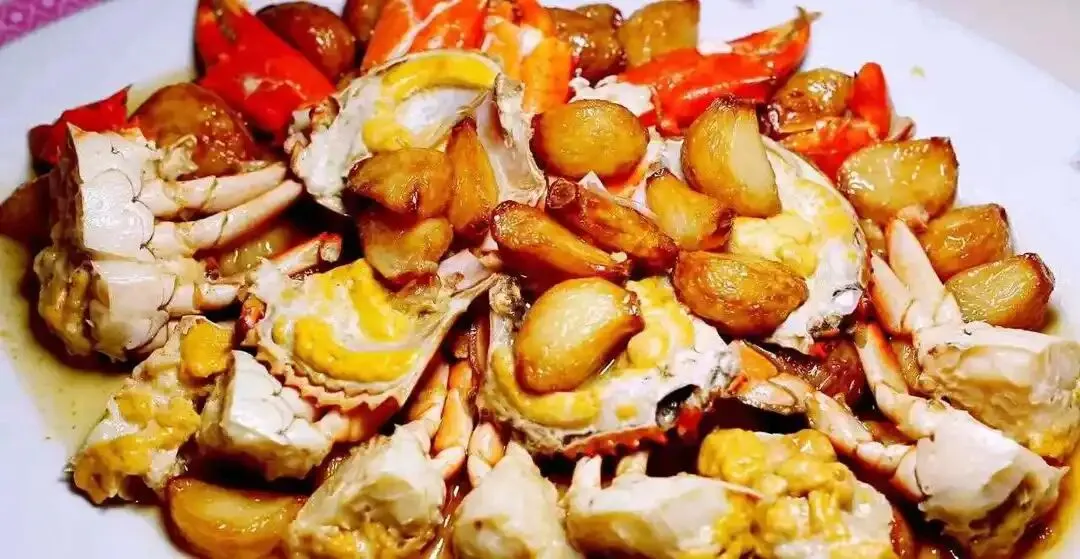 10、豆酱焗蟹:不加一滴水,用普宁豆酱焗制,鲜甜可口,蟹肉饱满,是潮汕家常菜的经典做法。