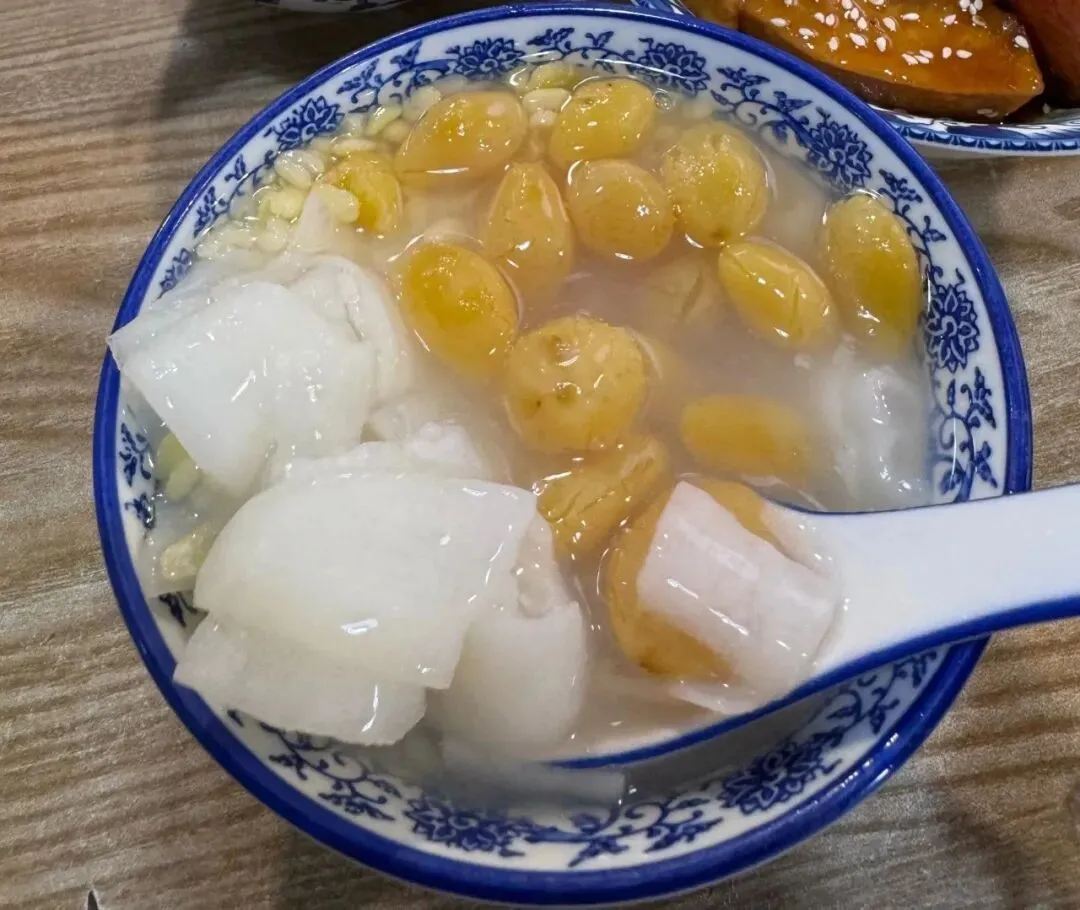 12、姜薯汤:姜薯切片煮至透明,搭配绿豆爽或甜芋番薯,清润解腻。