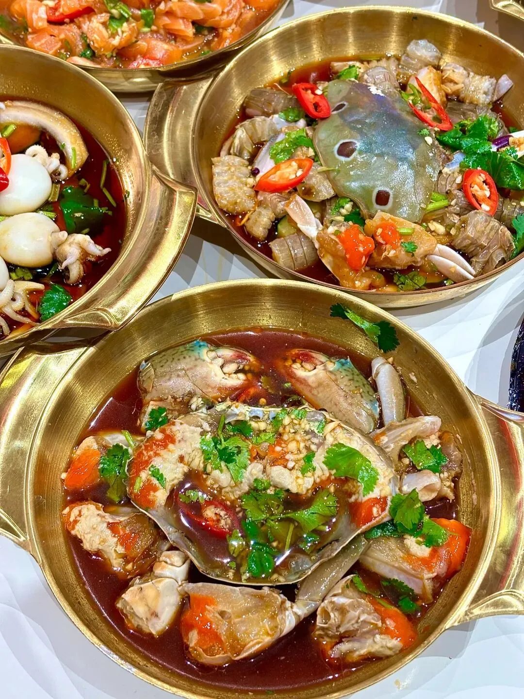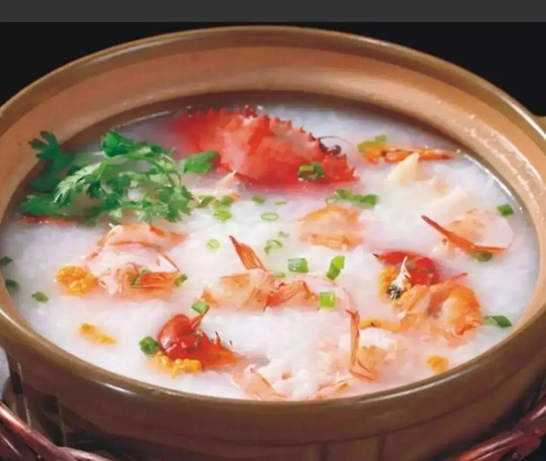 18、海鲜砂锅粥:活虾、蟹现捞现熬,粥底稠滑,咸香鲜浓,配香酥油条泡着吃,碳水快乐拉满。