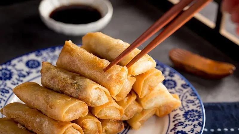 19、海霸王潮汕老式春卷:非遗技艺传承,饼皮薄如蝉翼,油炸后酥脆不腻,内馅以去皮绿豆为主料,搭配猪肉、香菇、香葱,形成“外酥里糯、咸香回甘”的复合口感。