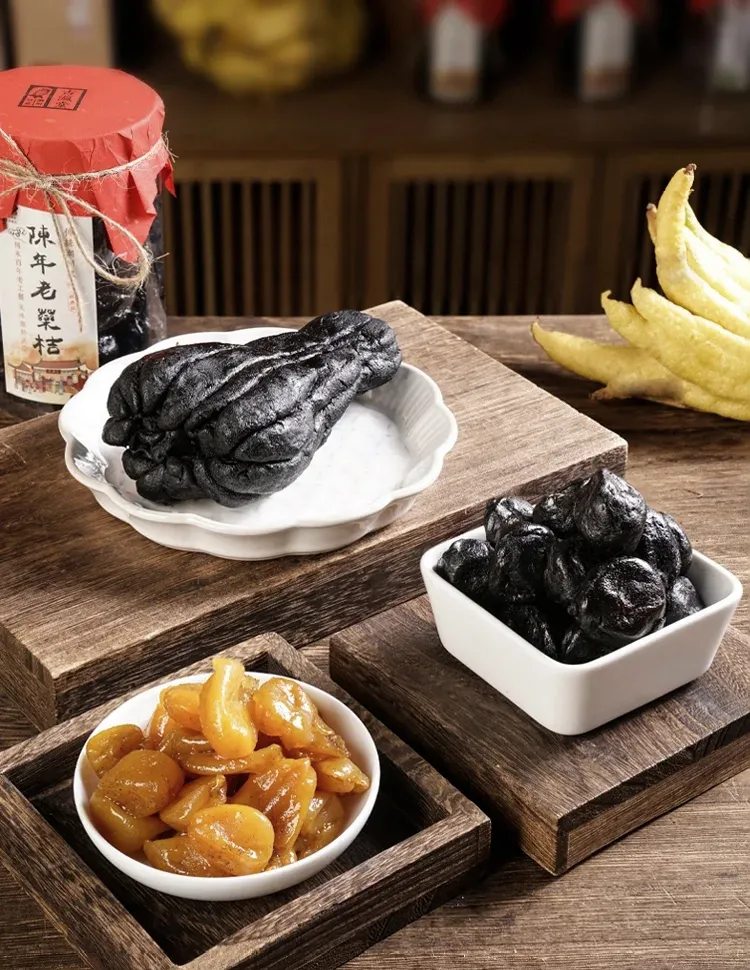 21、潮州三宝:老药桔、老香黄、黄皮豉,具有消食开胃、化痰止咳的功效,是潮汕特色药膳。