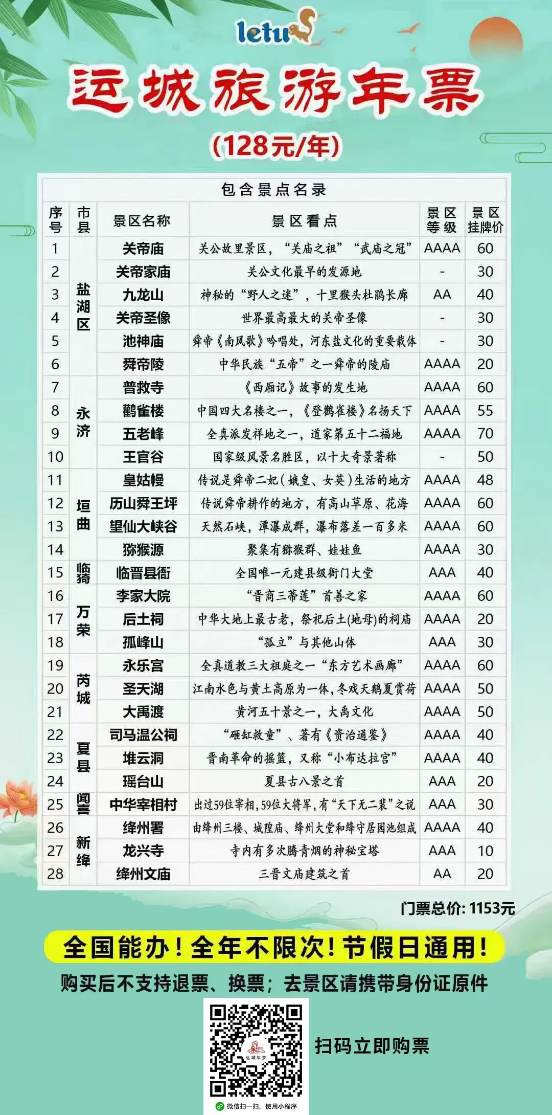 ▎运城旅游年票 ▎