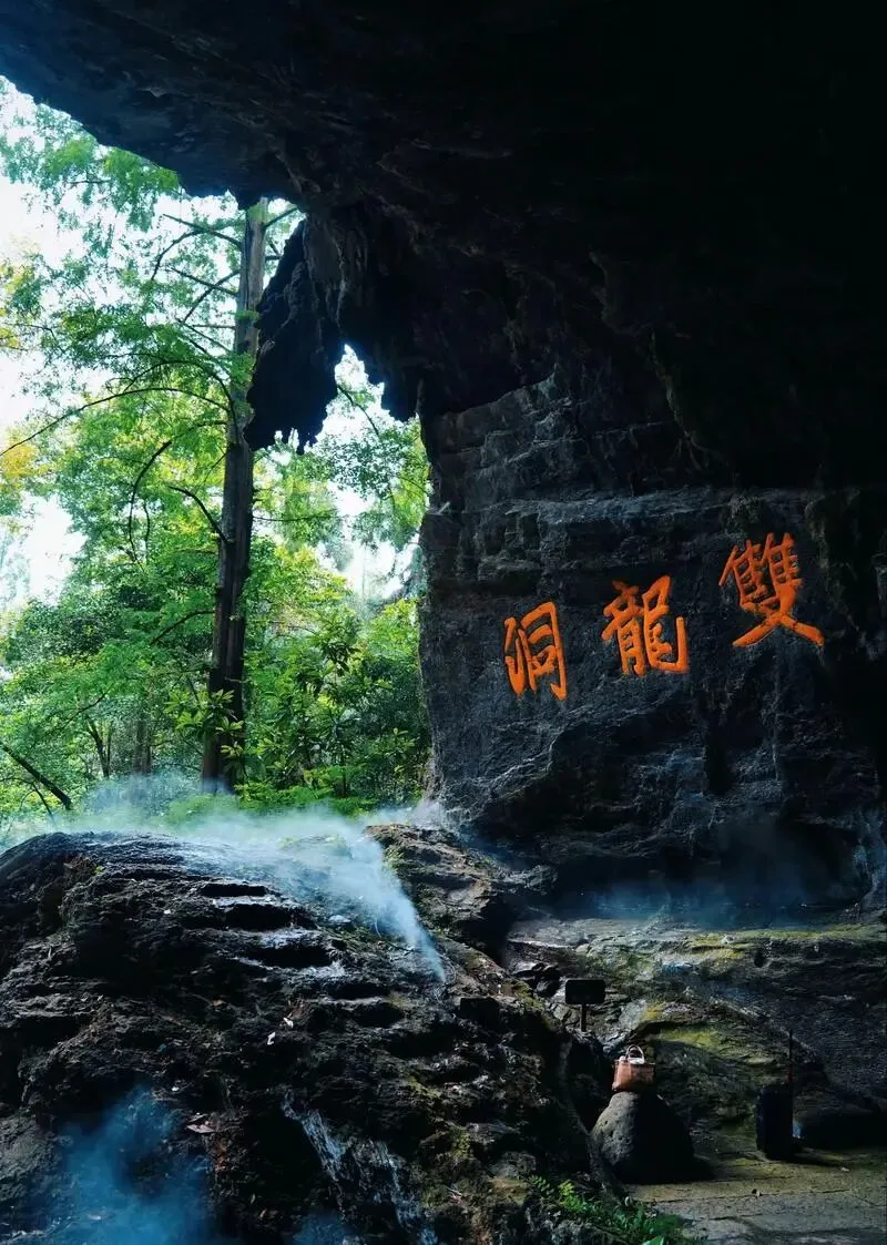 从古子城周边到双龙洞,车程也就二十多分钟,一路都是盘山公路,路况特别好,路边的风景也特别美,开着车,吹着风,满眼都是绿色,特别解压。