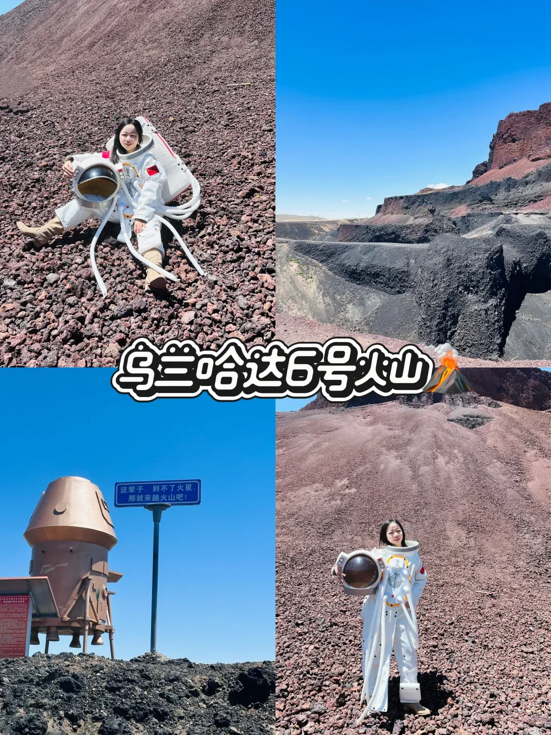 Day4 呼市→乌兰察布6号火山🌋 呼市离火山2小时车程,大清早就出发 📍乌兰察布·乌兰哈达6号火山🌋 逃离地球🌍计划 宇航员成功登陆 这辈子去不了火星就去火山吧 穿宇航服浅浅体验宇宙太空 不得不说火山口的7-8级风太大了 6月份还是有点冷的 气温10度左右 穿宇航服差点站不稳 有种随时要起飞的感觉