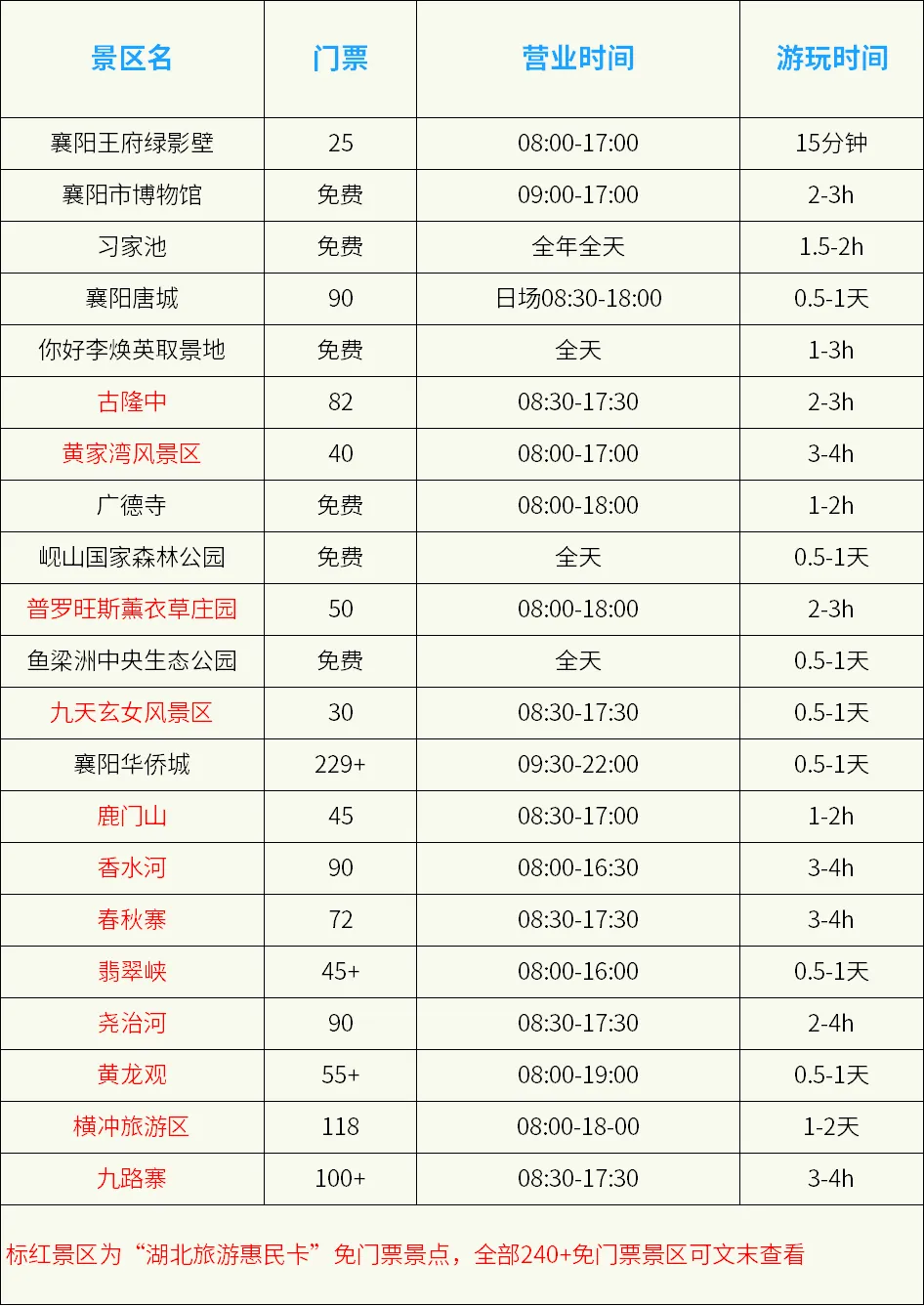 可以免湖北240+景区