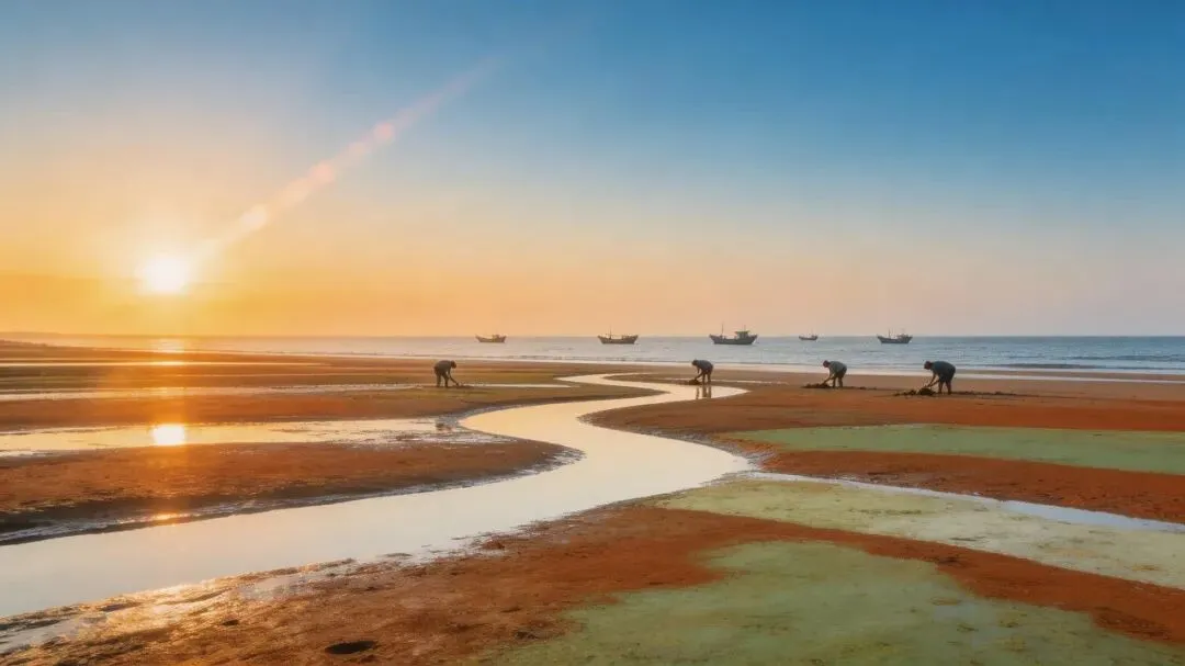 北岐滩涂拍日出(经典机位) 东壁村看日落和海上渔排 体验赶海,捡贝壳、抓螃蟹 吃地道海鲜:剑蛏、海带苗、紫菜