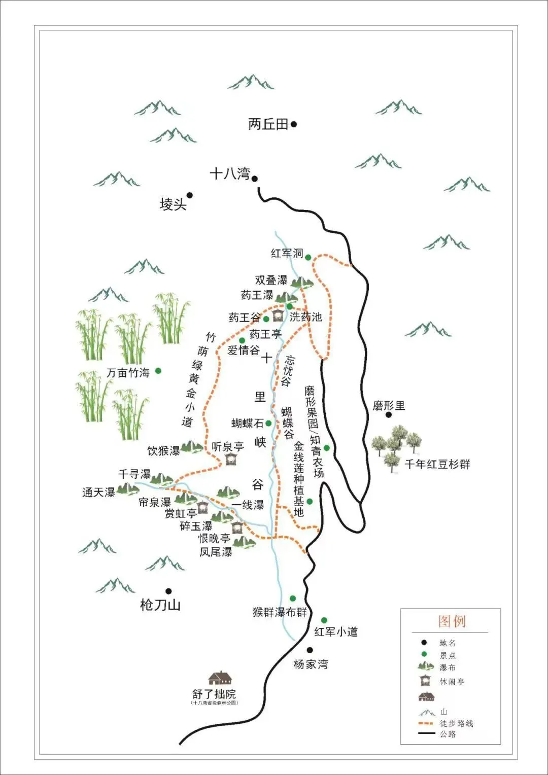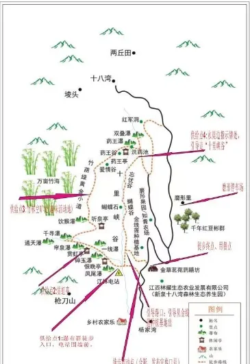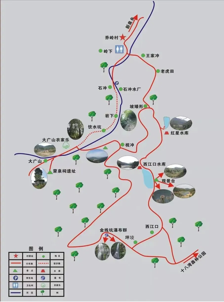 萍乡市→芦溪县城→新泉乡河坑村→杨家湾村→阴江里电站→井冲→山马塘→垇下→红军洞→窑前→磨形里