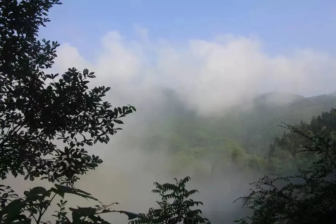 周围小山突兀独立,这一处,那一处,簇拥着庄严俊秀的马鞍山,山头白雾与天上白云相缠,雨雪霁晴时分,白雾直朝人怀里扑,整个马鞍山仙气缭绕,不像人间。