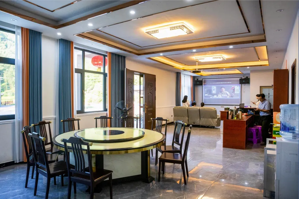 近两年来,杨家湾村依托得天独厚的生态优势、丰富的乡村旅游资源、完善的交通网络,带动了乡村旅游快速发展,实现了由农户利用自有住宅发展农家乐到引入专业团队打造精品民宿的转型发展,该村着重在精品民宿打造、产业提质增效、农产品销售等方面下功夫。该村的民宿具有乡土风韵浓厚、风格自然、舒适安全的特点,民宿依山而居,空气清新宜人,相比在城市树荫下乘凉,在这清幽山林中休憩游玩,凉爽又新奇,周边都是原生态森林环绕,主打一个吸氧宝地!