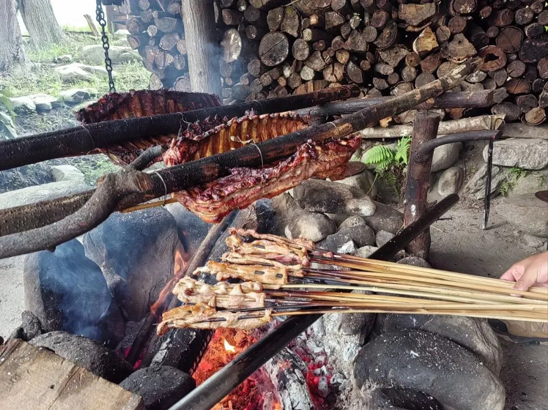 中午:在景区周边农家乐吃火山石烤肉,焦香入味。