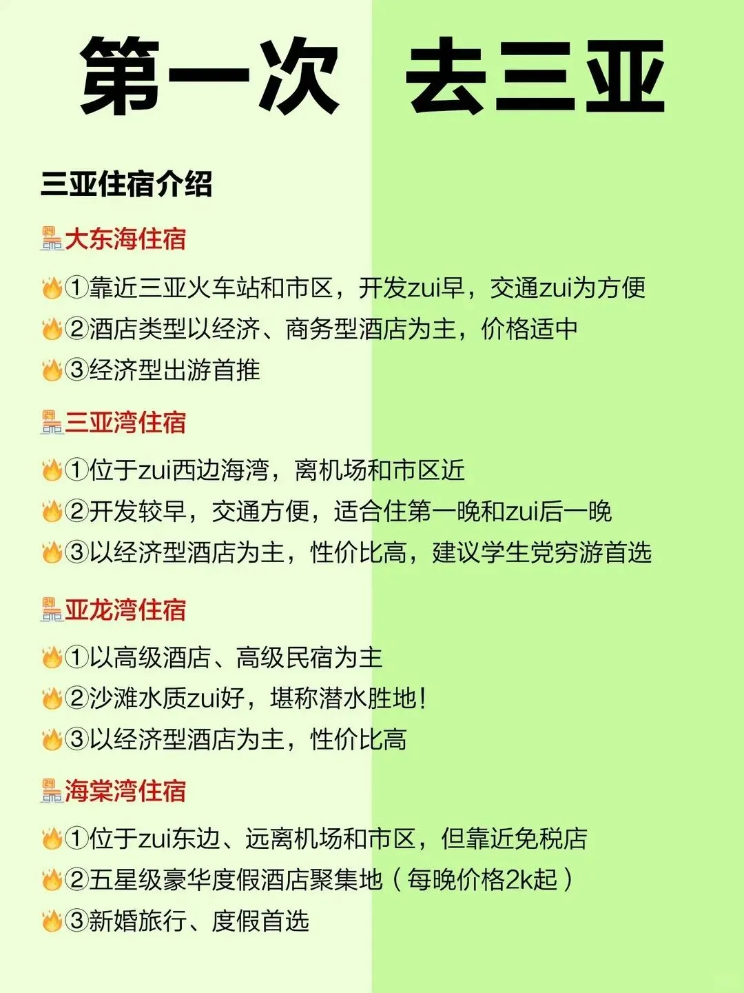 🏘 大东海:热闹便利。周边商场、小吃街、便利店超多,距离各个景点都不远。喜欢夜生活、想吃吃喝喝的年轻小伙伴,住这里最方便。