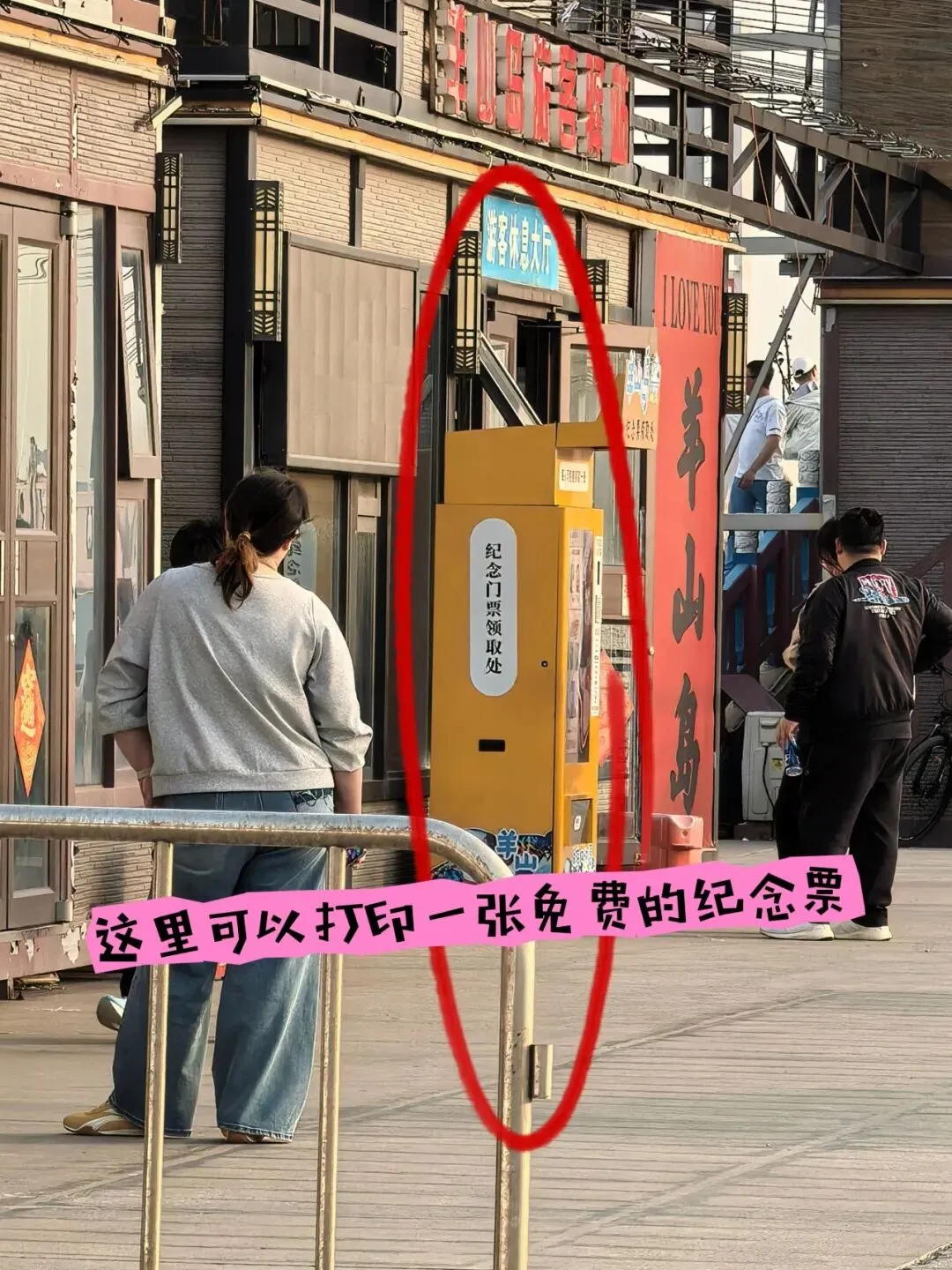 羊山岛那边还有一个可以免费打印纪念明信片的机器,在买船票的旁边